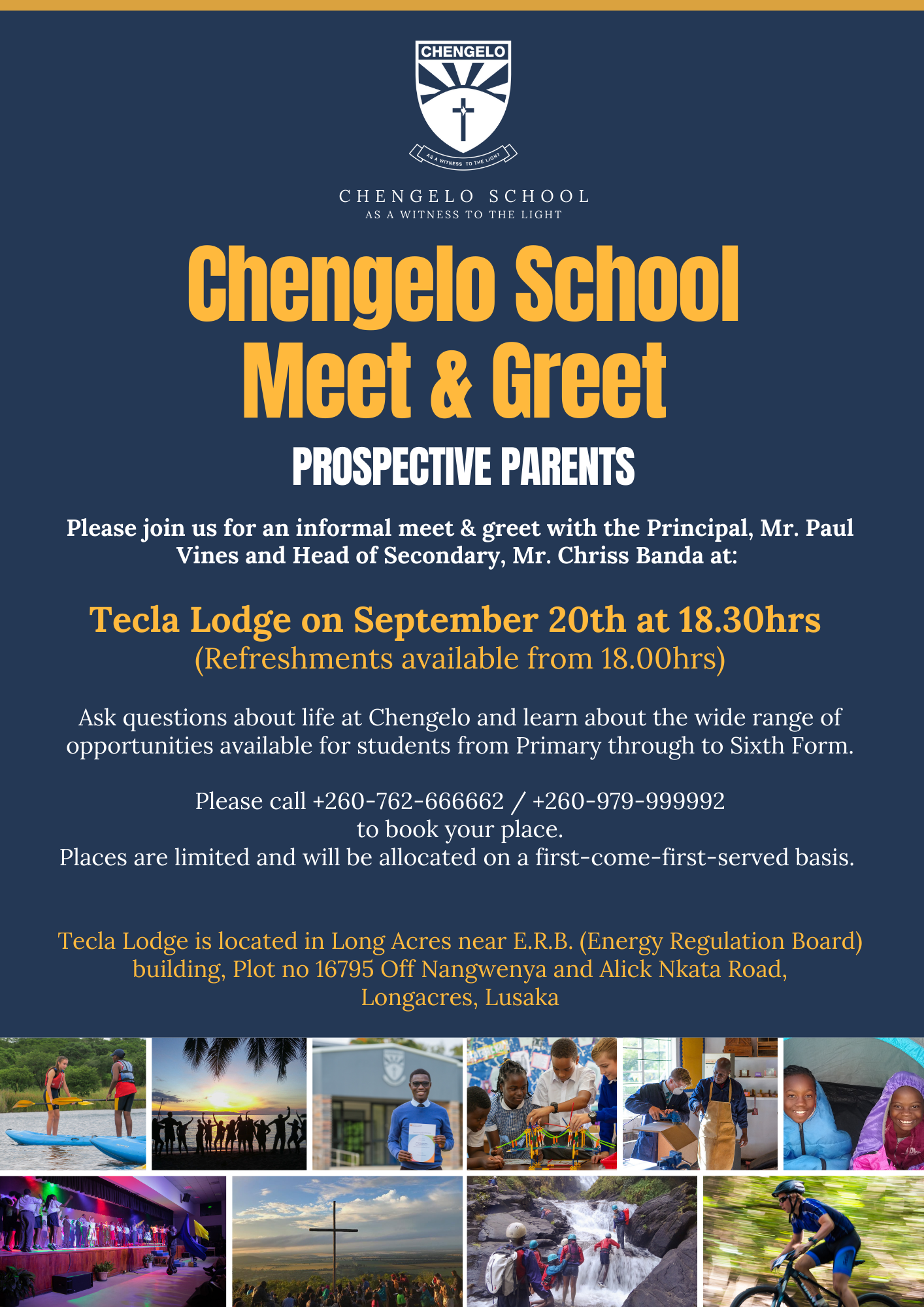 Please call +260-762-666662 / +260-979-999992 to book your place. Places are limited and will be allocated on a first-come-first-served basis.